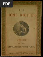 Knitting was once thought to be one of those timeless arts that went back forever. But in fact, it seems to have been invented sometime late in the first millennium C.E., perhaps as early as the 8th C. The earliest pieces of surviving knitting which are all from Islamic countries are dated by their style of decoration to the 9th, 10th and 11th C. Even these earliest pieces are filled with intricate, multi-colored designs. Most of this material comes from graves and trash heaps in Egypt and other dry places, where textiles are more likely to be preserved. The Islamic connection becomes even stronger when we note that the earliest knitted items in whats now Western Europe are from Spain, where Islamic influence was strong. These early items include a pair of bishops ceremonial gloves (dated around 1245) and two cushion-covers. These are all very finely knitted in silk, and come from the royal tombs in the Monastery of Las Huelgas, near Burgos. One of the pillows bears a simple Islamic inscription (the repeated word baraka, which means blessing), and may well have been made by an Islamictrained artisan. Another artisan signed his name, Husain, to an embroidered pillow made in a strikingly similar style from the same set of tombs. The early knitting story was complicated for a long while by the confusion of knitting with another craft, nalbinding. Nalbinding has been around for much longer, and it can create textiles that look quite a lot like knitting. Nalbinding is a series of interlocking loops, made with a threaded needle and cut lengths of yarn or thread. The main structural difference between nalbinding and knitting is that in nalbinding, the end of the yarn is passed through every stitch. Knitting, on the other hand, is constructed from a continuous thread, and a loop, rather than an end, is pulled through each stitch. It can be difficult on occasion to tell which technique was used, although there are telltale signs if you know where to look. But archaeologists who are not textile historians may not even know that nalbinding exists. Many textiles made with nalbinding from Roman and even Egyptian times have been misidentified as knitting in archaeologists reports or worse still, as crochet, which was only invented in the 19th C. The prevailing theory on the origin of knitting is that it probably evolved out of nalbinding, when someone realized that by not pulling the end of the yarn through each loop, one continuous thread could be used for the entire piece. Like nalbinding, the theory goes, the earliest knitting was probably worked in the round to make cylindrical or tapered shapes, such as stockings or hats. In fact, many of the surviving pieces of early knitting
