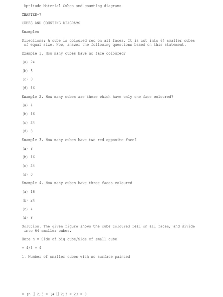 Aptitude Material Cubes and counting diagrams CHAPTER-7 CUBES AND COUNTING DIAGRAMS Examples Directions: A cube is coloured