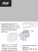 (d) 0 25. How many cubes have no face painted? (a) 0 (b) 8 (c) 12 (d) 16 26. How many cubes have two faces painted yellow and black respectively? (a) 0 (b) 8 (c) 12 (d) 16 Directions: A cube is painted blue on all faces is cut into 125 cubes of equal s ize. Now, answer the following questions 27. How many cubes are not painted on any face? (a) 8 (b) 16 (c) 18 (d) 27 28. How many cubes are painted on one face only? (a) 8 (b) 16 (c) 36 (d) 54 Directions :A cuboid of dimensions (4 cm x 3 cm x 3 cm). The block is painted ye llow on the pair of opposite surfaces of dimensions (4 cm x 3 cm). Remaining two opposite surfaces of dimensions (4 cm x 3 cm) are painted red. And two surfaces of dimensions (3 cm x 3 cm) are painted with green colours. Now the block is di vided among cubes of dimensions (1 cm x 1 cm 1 cm)? 29. How many smaller cubes will have one surface painted? (a) 16 (b) 12