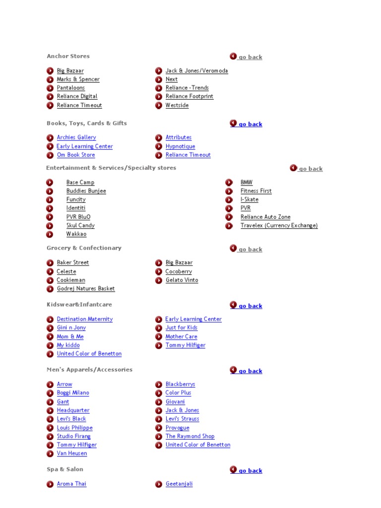 BMW Fitness First I-Skate PVR Reliance Auto Zone Travelex (Currency Exchange)