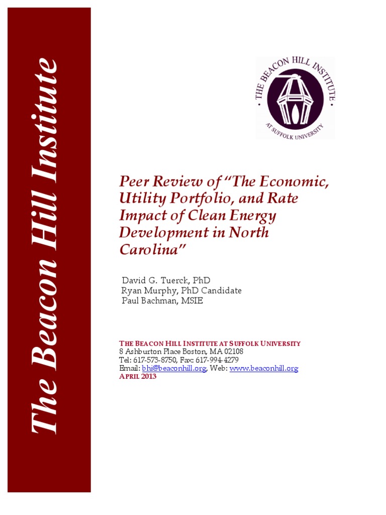 Peer Review of "The Economic, Utility Portfolio, and Rate Impact of Clean Energy Development in North Carolina"