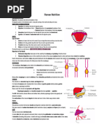 into glucose molecules that can be absorbed into the blood. Glucose is carried through the bloodstream to the liver, where it is stored or used to provide energy for the work of the body. Table sugar is another carbohydrate that must be digested to be useful. An enzyme in the lining of the small intestine digests table sugar into glucose and fructose, each of which can be absorbed from the intestinal cavity into the blood. Milk contains yet another type of sugar, lactose, which is changed into absorbable molecules by an enzyme called lactase, also found in the intestinal lining. Protein. Foods such as meat, eggs, and beans consist of giant molecules of protein that must be digested by enzymes before they can be used to build and repair body tissues. An enzyme in the juice of the stomach starts the digestion of swallowed protein. Further digestion of the protein is completed in the small intestine. Here, several enzymes from the pancreatic juice and the lining of the intestine carry out the breakdown of huge protein molecules into small molecules called amino acids. These small molecules can be absorbed from the hollow of the small intestine into the blood and then be carried to all parts of the body to build the walls and other parts of cells. Fats. Fat molecules are a rich source of energy for the body. The first step in digestion of a fat such as butter is to dissolve it into the watery content of the intestinal cavity. The bile acids produced by the liver act as natural detergents to dissolve fat in water and allow the enzymes to break the large fat molecules into smaller molecules, some of which are fatty acids and cholesterol. The bile acids combine with the fatty acids and cholesterol and help these molecules to move into the cells of the mucosa. In these cells the small molecules are formed back into large molecules, most of which pass into vessels (called lymphatics) near the intestine. These small vessels carry the reformed fat to the veins of the chest, and the blood carries the fat to storage depots in different parts of the body. Vitamins. Another vital part of our food that is absorbed from the small intestine is the class of chemicals we call vitamins. The two different types of vitamins are classified by the fluid in which they can be dissolved: water-soluble vitamins (all the B vitamins and vitamin C) and fat-soluble vitamins (vitamins A, D, and K). Water and salt. Most of the material absorbed from the cavity of the small intestine is water in which salt is dissolved. The salt and water come from the food and liquid we swallow and the juices secreted by the many digestive glands.
