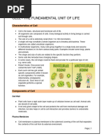 1) Cell wall: It is absent in animals but found in most of the plants. It is a semi rigid, permeable structure consisting of cellulose, lignin and other substances, gives shape to the cell. 2) Cell membrane: It is found both on plants and animals. It is a thin covering surrounding the cytoplasm. It is present just beneath the cell wall in plants. It is a semi permeable membrane which permits the passage of certain substances but prevents the passage of others. 3) Protoplasm: All components internal to cell. Cytoplasm is the portion of protoplasm without nucleus. It contains water (85 to 90 %), proteins (7-10%), fats (1-2%) and sugar and starches (12%) . Protoplasm contains a number of specialised structure called cell organelles and chemical compounds called cell inclusions. 4) Nucleus: The presence of a nucleus distinguishes the more complex eukaryotic cells of cells of plants and animals from simpler prokaryotic cells of bacteria that lack a nucleus. It is typically round and occupies about 10% of cells volume. The nucleus contains the nucleolus, which manufactures protein producing structures called ribosome. Genetic information in the form of