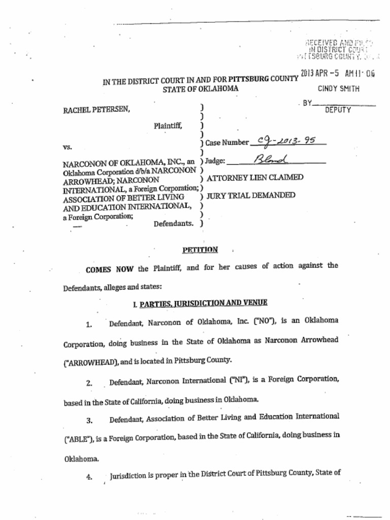 Rachel Petersen Vs Narconon