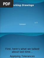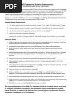 School of Aerospace, Mechanical and Manufacturing Engineering Example: You wish to make a drawing for a pressure vessel made up of pipes and flanges. The assembly drawing number would be: PS-A001 and the Top flange part drawing number would be TF-P001. 3) REVISION: After submitted your drawing and when modification is necessary, you need to increment the revision number. You also should fill a row in the revision block. Thus, the drawing number will have to be updated accordingly. 4) NEXT ASSY: Enter drawing number on which the part is next utilized, modified, or assembled. In the case of tooling drawings, in the Next Assembly block refer to a general note that states This drawing is used to fabricate: (drawing number). 5) SH _ OF _: Enter sheet number as applicable. (i.e. if a part or assembly drawing is made up of more than one page) 6) SCALE: Enter scale. Drawings shall be made to full scale unless the parts (or assembly) are too large to permit it or so small and complex that drawing to an enlarged scale is essential for clarity. When the main views of large parts are drawn to a reduced scale, the detail views taken to clarify detail should be made to full scale whenever possible. When the part has been drawn to an enlarged scale for clarity, it is not necessary to make an actualsize view. The scales preferred for engineering drawings are full size 1/1, reduced 1/2, 1/4, 1/10, 1/20, and enlarged 2/1, 4/1, 10/1, 20/1. 7) DESIGNED BY: Enter designer's printed name. 8) CHECKED BY: Enter design analyst's printed name. This name shall be an independent name from all other names on the drawing. It represents that the drawing has been checked against the parameters of this drawing manual and, where possible, to form, fit, function, and feasibility. All drawings for issue to the SAMME workshop need checking by the Technical Design Officer prior to submission. 9) DOCUMENT TYPE: Assembly Drawing or Part Drawing as to be mentioned. 10) FINISH and HEAT TREATMENT: The finish surface and the heat treatment of the part shall be identified here. 11) QUANTITY: Indicate here the quantity of parts needed. 12) ANGLE PROJECTION: The standard use of Third Angle projection is in place in Australia. Note: CATIA is a French software using European Standard projection (i.e. First Angle projection). You will need to change the projection method in the properties of the drawing sheet. 13) GENERAL TOLERANCING: If you dont specify tolerances to your dimensions, then these standards will apply. (See dimensioning and tolerancing) Note: The use of the general tolerancing ISO 2768 mK are in place in RMIT. 14) NOTES: Add any notes you think are necessary for the manufacture of the part.