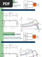 Below rated (base) speed (Constant torque region) 1. Change slip speed to get required torque for any speed. 2. Obtain frequency as sum of speed and slip speed. 3. Determine supply voltage by adding stator resistance drop to the component that is proportional to frequency. Above rated (base) speed up to 1.5-2 times rated speed (Constant power region) 1. Keep supply voltage constant at rated value. 2. Limit slip to its rated value and adjust frequency such that slip speed does not exceed the breakdown or maximum allowable level of slip speed.