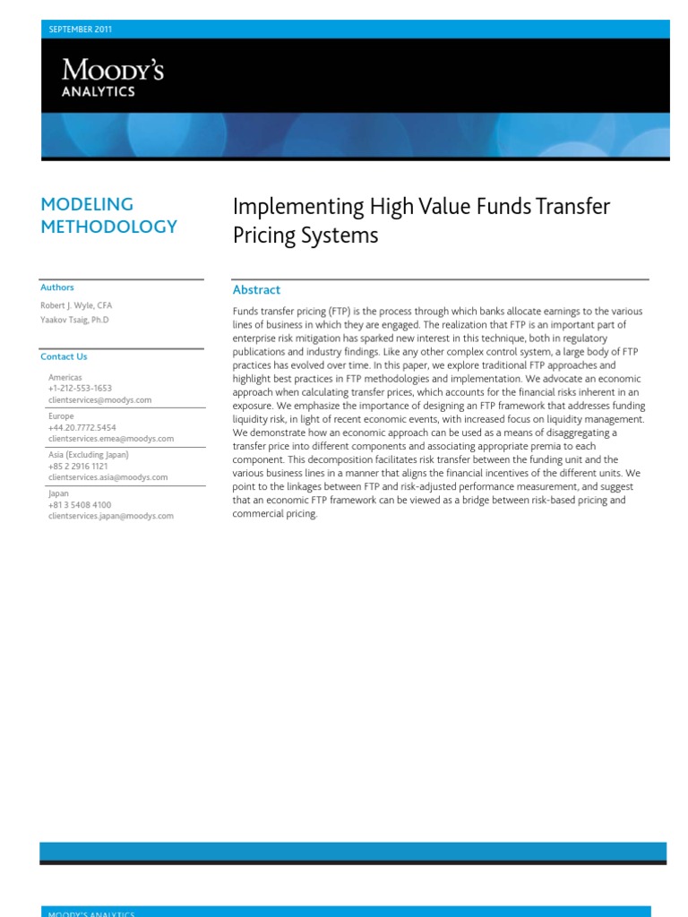 FTP is an internal measurement and allocation system that assigns a profit contribution to funds gathered, lent, or invested by a bank. Transfer pricing is a critical component of risk transfer, profitability measurement, capital allocation, and specifying business unit incentives, as it allocates net interest income to the various products or business units of a bank. Following the market turbulence that began in 2007, FTP has been identified as a component that enabled some banks to weather market turbulence better than others. However, like any complex internal control system, numerous challenges must be overcome. While both the theoretical and technical underpinnings of a successful FTP implementation are significant, the major hurdle remains gaining buy-in from the lines of business. Therefore, the FTP framework chosen must fairly reflect the unique characteristics of the funds as well as the institutions goals. FTP is rooted in a mark-to-market-based risk management framework. However, financial institutions are managed based on accrual income. Therefore, FTP may be thought of as the link through which a market-based financial risk management system is translated into financial incentives for large and diverse organizations. As such, the FTP concept is fraught with controversy, since it is used to benchmark performance. At times it may seem more art, perhaps even black art, than science. This paper examines how transfer pricing techniques and systems can add significant value to financial institutions. This document seeks to highlight best practices for high value FTP systems and includes FTP methodologies, the assignment of transfer rates, and FTP curve construction and adjustment. It should become clear to the reader that risk transfer is a mechanism through which a high-value treasury function can operate more as an integrated ERM strategic balance sheet management function than a back office silo. The remainder of this paper is organized as follows: