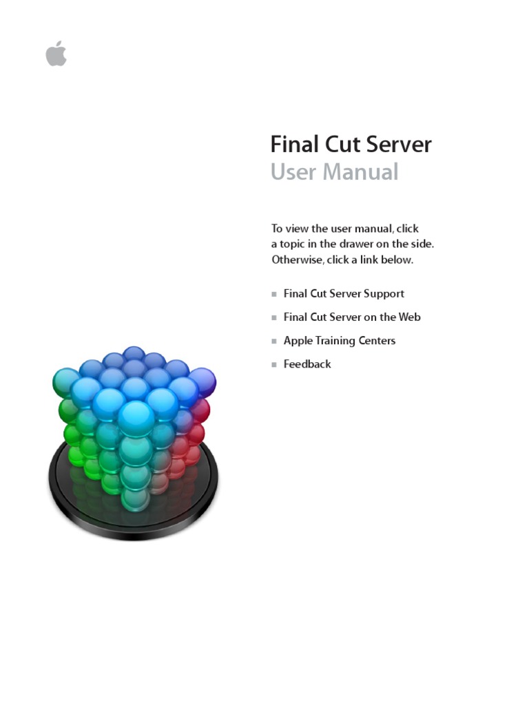 m Final Cut Server Support m Final Cut Server on the Web m Apple Training Centers m Feedback