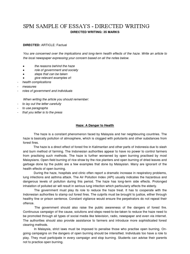 SPM SAMPLE OF ESSAYS - DIRECTED WRITING