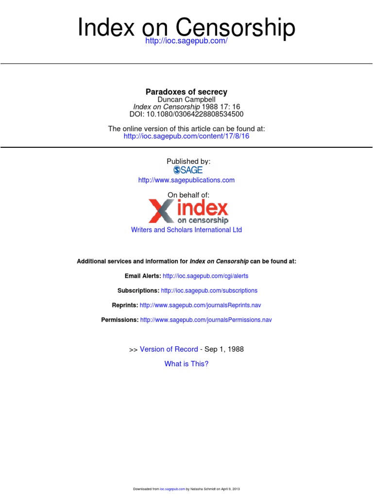 Paradoxes of Secrecy - Free Speech in The Thatcher Years