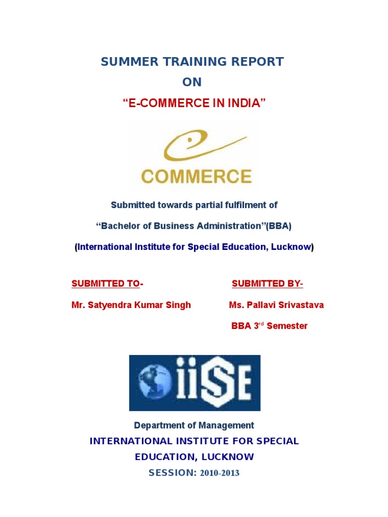 I do hereby declare that the research report titled E-COMMERCE E-COMMERCE IN INDIA INDIA submitted by me in partial fulfilment of the requirement of Bachelor of Business Administration, exclusively prepared and conceptualized by me and is not submitted to any other Institution or University or published anywhere before for the reward of any Degree/Diploma/Certificate. It is the Original work of mine and has not been obtained from any other part.