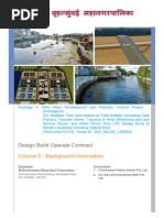 Design Example: Design a sag pipe system using the following given conditions: 1. Dia. of gravity sewer to be connected by sag pipe = 910 mm (36 in) 2. Slope of incoming sewer, S = 0.0016 m/m (ft/ft) 3. Min. flow velocity in sag pipe = 0.9 m/s (3 ft/s) 4. Length of sag pipe = 100 m (328 ft) 5. Max. sag pipe = 2.44 m (8 ft) 6. Design flows: Min. flow = 0.079 m3/s (2.8 ft3/s) Average flow = 0.303m3/s (10.7 ft3/s) = max. dry-weather flow Full (max.) flow = capacity of gravity sanitary sewer 7. Design three sag pipes from the inlet chamber (1) to carry min. flow (2) to carry flows from min. to average (3) to carry all flows above the average flow 8. Available fall from invert to invert = 1.0 m (3.3 ft) 9. Available head loss at inlet = 125 mm (0.5 ft) 10. Available head loss for friction in sag pipe = 1.0 m (3.3 ft) 11. Available hydraulic grade line = 1 m/100 m = 0.01 m/m 12. n = 0.015 (ductile-iron pipe) Note: The above information is required to design a sag pipe system. Solution: Step 1. Design the sag pipe (a) Calculate velocity and flow of the 910 mm sewer for full flow R = d/4 = 910 mm/4 = 227.5 mm = 0.2275 m V = (1/n)R2/3S1/2 = (1/0.015) (0.2275) 2/3(0.0016) 1/2 = 0.994 m/s Flow Q = AV = 3.14 (0.455 m) 2 (0.994 m/s) = 0.646 m3/s (b) Determine the size of the small sag pipe to carry the min. flow (d = dia. of the pipe)