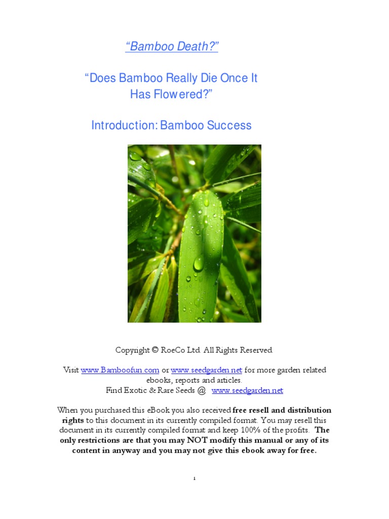 Copyright RoeCo Ltd. All Rights Reserved. Visit www.Bamboofun.com or www.seedgarden.net for more garden related ebooks, reports and articles. Find Exotic & Rare Seeds @ www.seedgarden.net When you purchased this eBook you also received free resell and distribution rights to this document in its currently compiled format. You may resell this document in its currently compiled format and keep 100% of the profits. The only restrictions are that you may NOT modify this manual or any of its content in anyway and you may not give this ebook away for free.