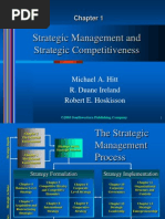 9. Achieving effective strategic control. Strategic controls enable a rm to implement strategies effectively. Informational controls involve comparing performance to stated goals and scanning, monitoring, and being responsive to the environment. Behavioral controls emerge from a companys culture, reward systems, and organizational boundaries. When assessing the impact of strategic controls on implementation, consider asking: I Is the company employing the appropriate informational control systems? If not, how can it implement a more interactive approach to enhance learning and minimize response times? I Does the company have a strong and effective culture? If not, what steps can it take to align its values and rewards system with its goals and objectives? I Has the company implemented control systems that match its strategies? If so, what additional steps can be taken to improve performance? 10. Creating effective organization designs. Organizational designs that align with competitive strategies can enhance performance. As companies grow and change, their structures must also evolve to meet new demands. In todays economy, rm boundaries must be exible and permeable to facilitate smoother interactions with external parties such as customers, suppliers, and alliance partners. New forms of organizing are becoming more common. When evaluating the role of organizational structure on strategy implementation, consider asking: I Has the company implemented organizational structures that are suited to the type of business it is in? If not, how can it alter the design in ways that enhance its competitiveness? I Is the company employing boundaryless organizational designs where appropriate? If so, how are senior managers maintaining control of lower-level employees? I Does the company use outsourcing to achieve the best possible results? If not, what criteria should it use to decide which functions can be outsourced? 11. Creating a learning organization and an ethical organization. Strong leadership is essential for achieving competitive advantages. Two leadership roles are especially important. The rst is creating a learning organization by harnessing talent and encouraging the development of new knowledge. Second, leaders play a vital role in motivating employees to excellence and inspiring ethical behavior. When exploring the impact of effective strategic leadership, consider asking: I Do company leaders promote excellence as part of the overall culture? If so, how has this inuenced the performance of the rm and the individuals in it? I Is the company committed to being a learning organization? If not, what can it do to capitalize on the individual and collective talents of organization members? I Have company leaders exhibited an ethical attitude in their own behavior? If not, how has their behavior inuenced the actions of other employees? 12. Fostering corporate entrepreneurship and new venture creation. Many rms continually seek new growth opportunities and avenues for strategic renewal. In corporate settings, the autonomous actions of product champions and other rm members provide companies with the impetus to expand into new areas. Young and small businesses also