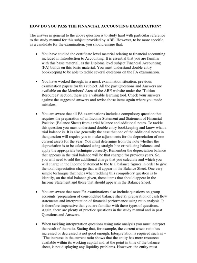 HOW DO YOU PASS THE FINANCIAL ACCOUNTING EXAMINATION?