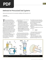 away from the lapped faces and dynamic elastomer. Check to see if your design does it efficiently. Any dynamic elastomer (an O-ring is typical) should have the ability to flex and then roll, or slide to a clean surface as the carbon face wears. The seal face load should be adjustable to compensate for open impeller adjustments and axial growth of the shaft. Cartridge seals do this very well. Can you use universal materials to lower your inventory costs and avoid mix-up problems? All of the seal materials should be clearly identified by type and grade. You will need this information if you have to analyze a premature seal failure. Some seal companies try to make everything a secret, do not tolerate it! Will the seals be hydraulically balanced to prevent the generation of unwanted heat between the lapped faces? What is the percentage of balance? If you are using dual seals will the inner seal be a double balanced seal that is hydraulically balanced in both directions? Pressures can reverse in dual seal applications. You will want to become familiar with the effects of heat on: r The seal faces, especially the carbon and plated or coated hard faces r The elastomers, especially the dynamic elastomer r Excessive corrosion of the seal components. r The product. It can change with heat. It can vaporize, solidify, crystallize, coke or build a film with an increase in the product's temperature. r Internal tolerances of the seal especially face flatness and elastomer squeeze. Heat causes thermal growth of these components that will alter their critical tolerances.