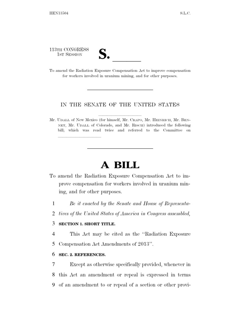 To amend the Radiation Exposure Compensation Act to improve compensation for workers involved in uranium mining, and for other purposes. 1 Be it enacted by the Senate and House of Representa-