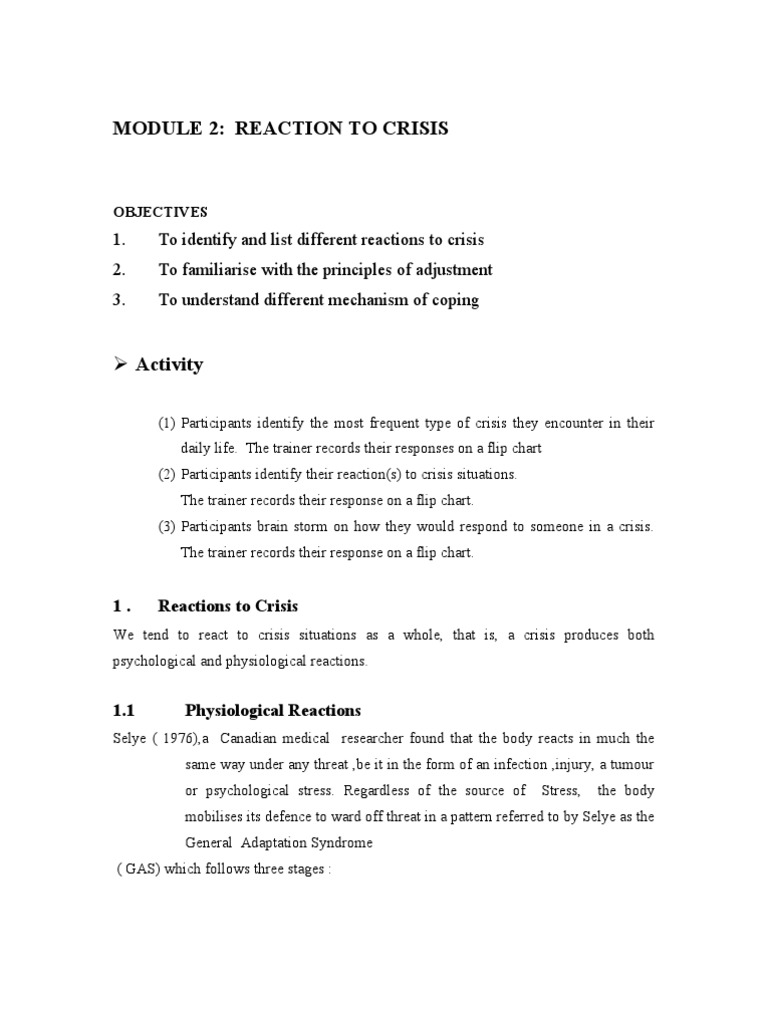 MODULE 2: REACTION TO CRISIS