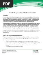 This Belden VFD Cable Termination Guide takes a step-by-step approach to the connection/ termination of unarmored VFD cables with either foil-braid or copper-tape shield constructions. The instructions cover the termination of the cables in external and self-contained enclosures, at the motor junction box or using an alternative method. VFD Cable Installation Location Considerations It is advisable to maintain as much separation as possible between noise-susceptible cables and VFD cables a minimum of one foot for shielded instrumentation cables and three feet for unshielded instrumentation cables. If the two types of cable must lie close to each other, it is best to minimize the amount of parallel runs between them, limiting these stretches to 10 feet or less to reduce the likelihood of radiated noise pickup. Also, if the two types of cables must cross, it is preferable to cross them perpendicularly at a single point.