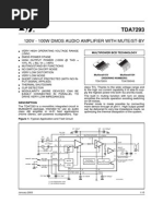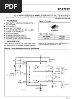 the amplifier, this to avoid "POP" and "CLICK" on the outputs. When this voltage reaches the St-by threshold level, the amplifier is switched-on and the external capacitors in series to the input terminals (C3, C5) start to charge. Its necessary to mantain the mute signal low until the capacitors are fully charged, this to avoid that the device goes in play mode causing a loud "Pop Noise" on the speakers. A delay of 100-200ms between St-by and mute signals is suitable for a proper operation.