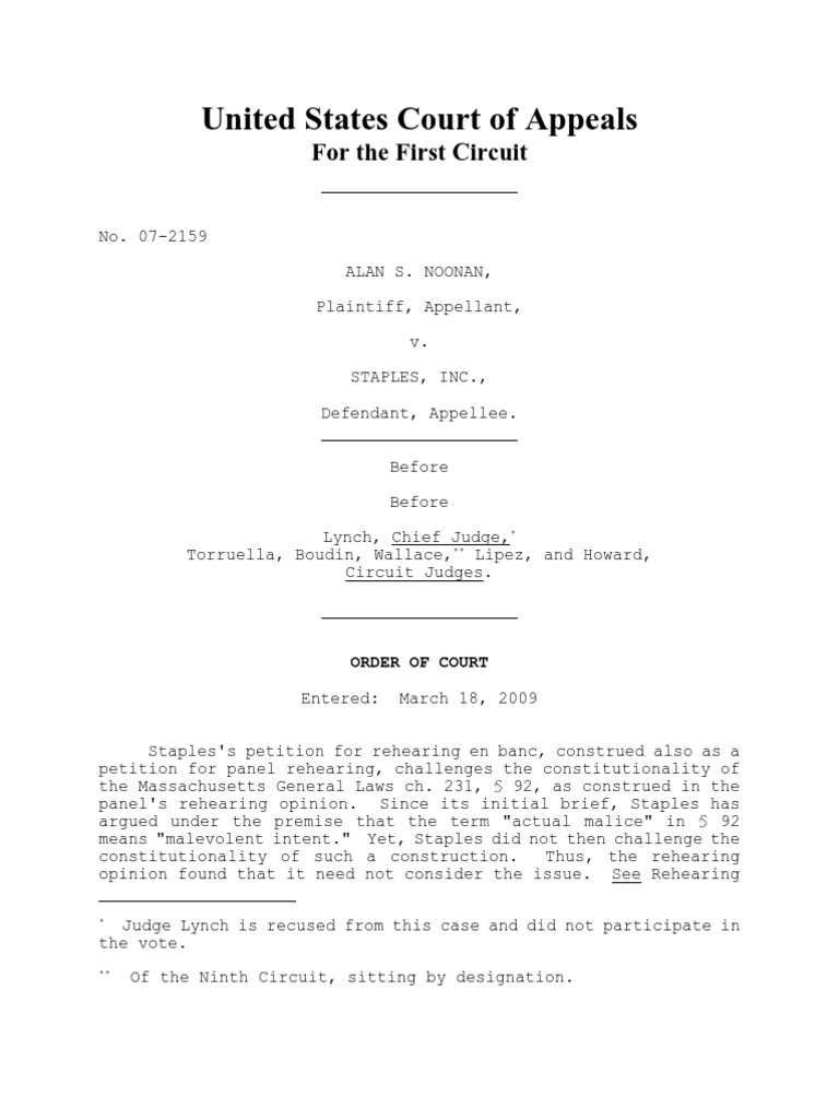 Noonan V Staples Reh Den 03-19-09