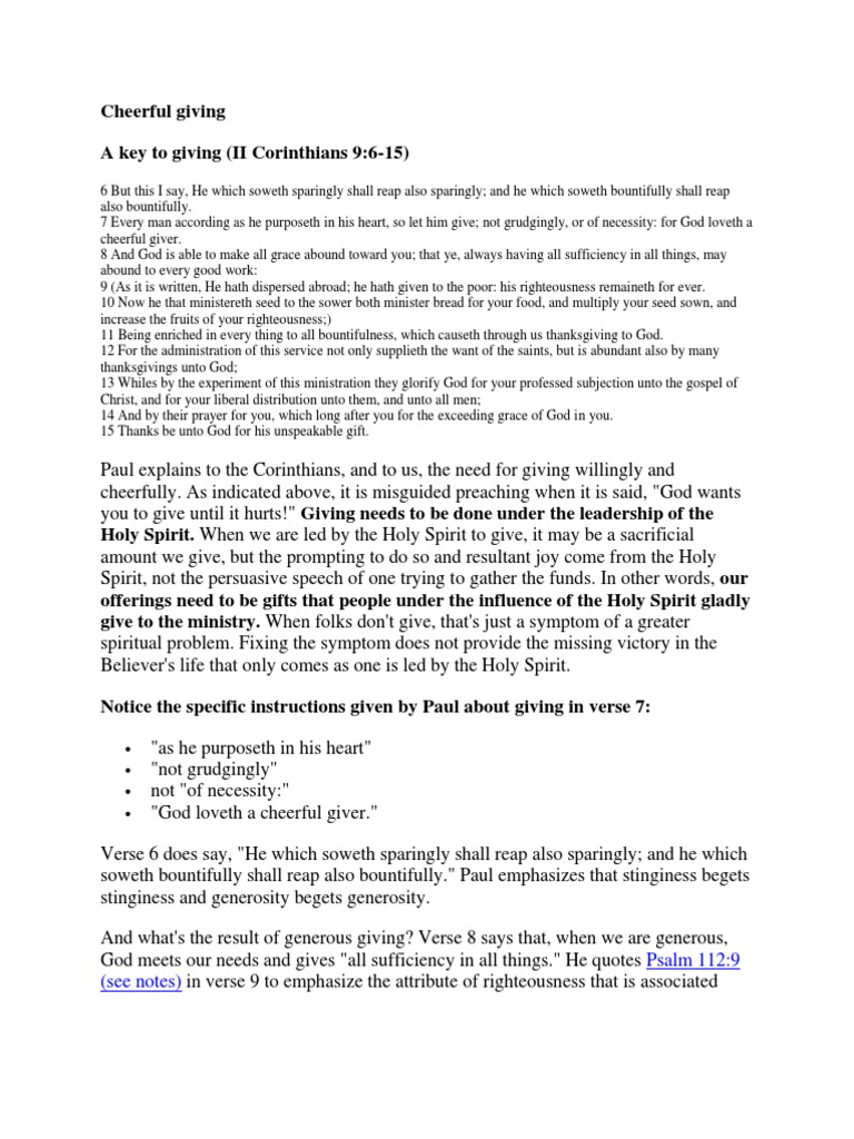 Cheerful giving A key to giving (II Corinthians 9:6-15)