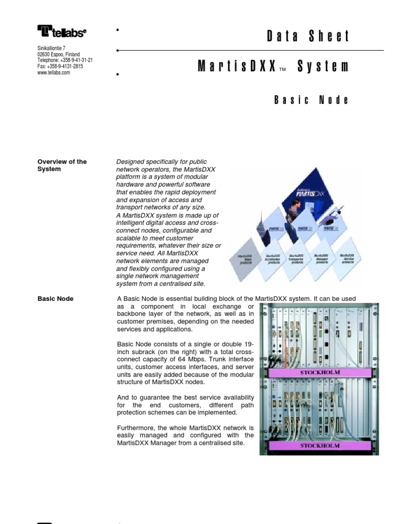 Information subject to change without further notice. We conform to the most recent standard unless otherwise specifically stated. 74.0474 Rev. D 01/99. Tellabs and the Tellabs logo are registered trademarks of Tellabs Operations, Inc. in the United States and/or in other countries. MartisDXX is a trademark of Tellabs Oy.