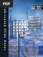 Hydro Gates standard radial gate is designed for a wide, clear waterway opening. A radial (or taintor) gate acts similar to a section of a drum. Pressure is transferred from the curved face through the horizontal support beams to the radial arms at the sides of the opening. The arms act as columns and transfer thrust to a common bearing located on either side of the gate opening. Flow is underneath the curved face as the gate is opened. This design results in a lightweight, economical gate that can be opened and closed with minimum effort and with comparatively small number of turns of the handwheel on the hoist. Hydro Gate radial gates are made for two types of installations. The first, and most commonly used, is an overflow type. This gate is designed for 1 ft of water flowing over the top of the gate when the gate is closed. Adequate safety factors prevent damage to the gate if there is a moderate, additional overflow beyond that limit for a short period of time. The second type employs the use of a breastwall. This is a vertical concrete wall above the top of the gate opening that results in additional storage capacity in front of the gate. Most radial gates are raise-to-open type, a variation is the lower-toopen type. This requires a weir wall for mounting a seal that must make contact with the curved face plate. Silt and debris entrapment is a problem with this arrangement.