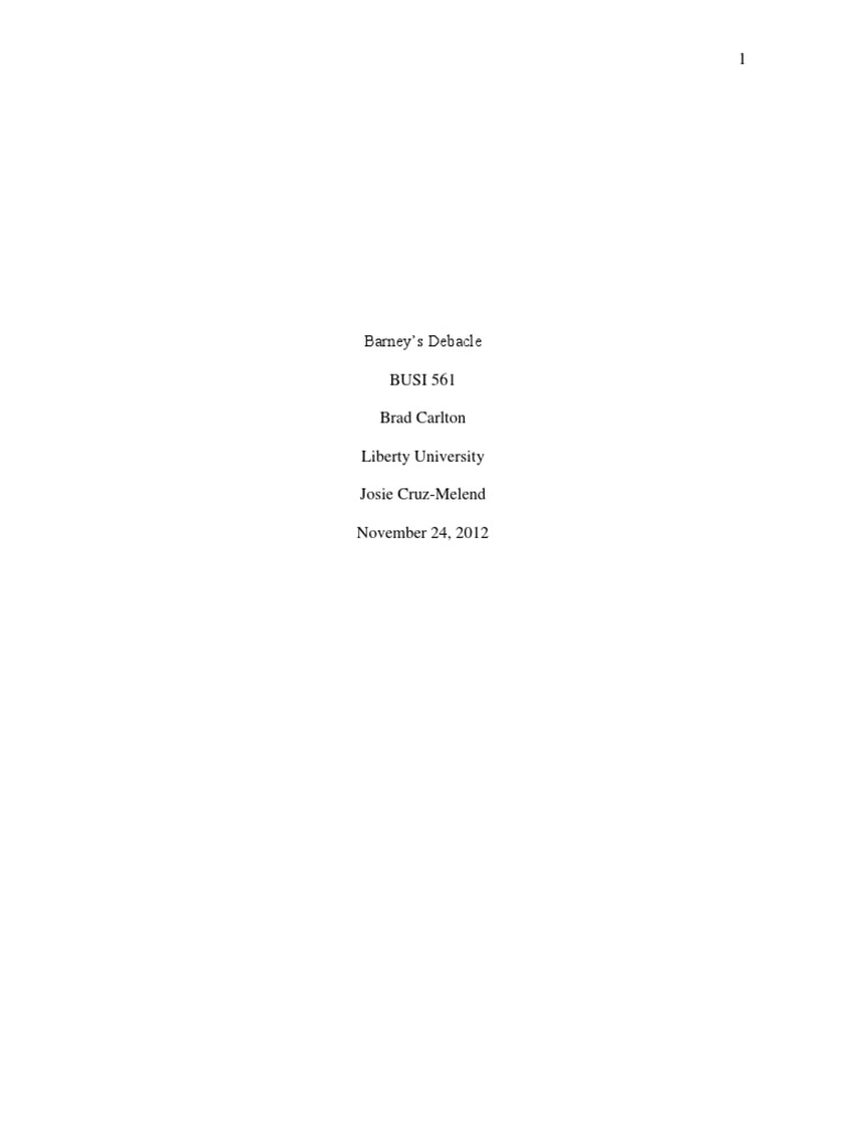 Barneys Debacle BUSI 561 Brad Carlton Liberty University Josie Cruz-Melend November 24, 2012