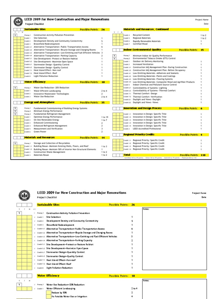 LEED 2009 for New Construction and Major Renovations Project Checklist