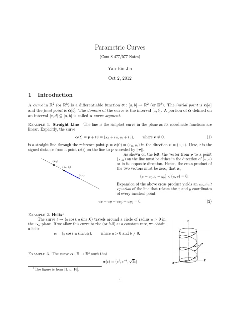 Example 1. Straight Line linear. Explicitly, the curve The line is the simplest curve in the plane as its coordinate functions are where v = 0, (1)