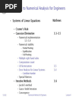 By Master Theorem, T(n) = o(n3) which is unfortunately not faster than the naive method Matrix-Multiply. Divide-and-Conquer Multiplication Drawback Each time we split matrix sizes in half, but do not actually reduce the total amount of time. If we assume that naive matrix multiplication takes c _ n3 time. Then computing each product of submatrices takes c .(n/2)3 = c . n3 /8 and we need eight such products, resulting in total time of 8 . c . n3 8 = c . n3 (plus overhead) that is no better than simply doing multiplication in the naive way. In contrast, let us consider Merge-Sort with the running time recurrence T(n) = 2T(n/2)+ O(n): Even if we did naive quadratic (that is, of time c . n2) sorting for each of the subproblems, the total time would be 2 . c . (n/2)2 = c . n2/2 (plus overhead of O(n)) that is faster than naive sorting of the whole problem by factor of 2. This tells us that Divide-andConquer sorting may be more efficient than naive sorting (and it is indeed such as Master Theorem proves). Strassen's Method The idea behind Strassen's method is to reduce the number of multiplications at each recursive call from eight to seven. That makes the recursion tree slightly less bushy. Strassen's method has four steps: 1- Divide the input matrices A and B into submatrices as before, using index calculations in O(1) time.