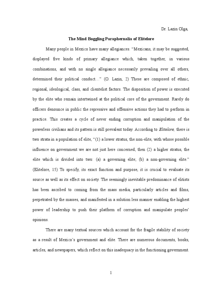 (Elitelore, 42) Mexico’s elite have become a symbol and embodiment of the values of a