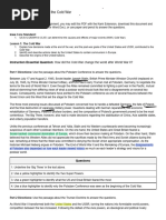 1. What was the Cold War? What was the Iron Curtain? 2. According to the introduction on p.831, what postwar phenomenon was even more important than the Cold War? Before reading, why might this be important and how might it change relations in the world? The postwar phenomenon that was even more important that the cold war itself was that the western dominance of Asia, Africa, and Latin America was largely ended and the colonial empires of the New Imperialism were gradually dismantled. The new generation of national leaders to head the states in these regions sometimes skillfully played the Cold War antagonism to their own advantage. 3. Explain what NATO was meant to do? What was the Eastern Bloc group? 4. Explain the formation and role of the United Nations. The formation of the United Nations had two main bodies: the General Assembly, with representatives from all member states; and the Security Council, with five permanent members: China, France, Great Britain, the United States, and the Soviet Union. The roles of the United Nations include various agencies focused on specialized international problems, for example, the United Nations Childrens Emergency Fund and the Food and Agriculture Organization. Basically the United Nations have very similar job as the League of Nations. 5. What is the IMF and World Banks role in the world? (p.834) 6. How did the West and the Soviet Union differ in setting prices (834) In the Western countries, supply and the demand determined the prices where in the Soviet Union, the government priorities and agencies allocated goods and set prices based on that, irrespective of market forces.
