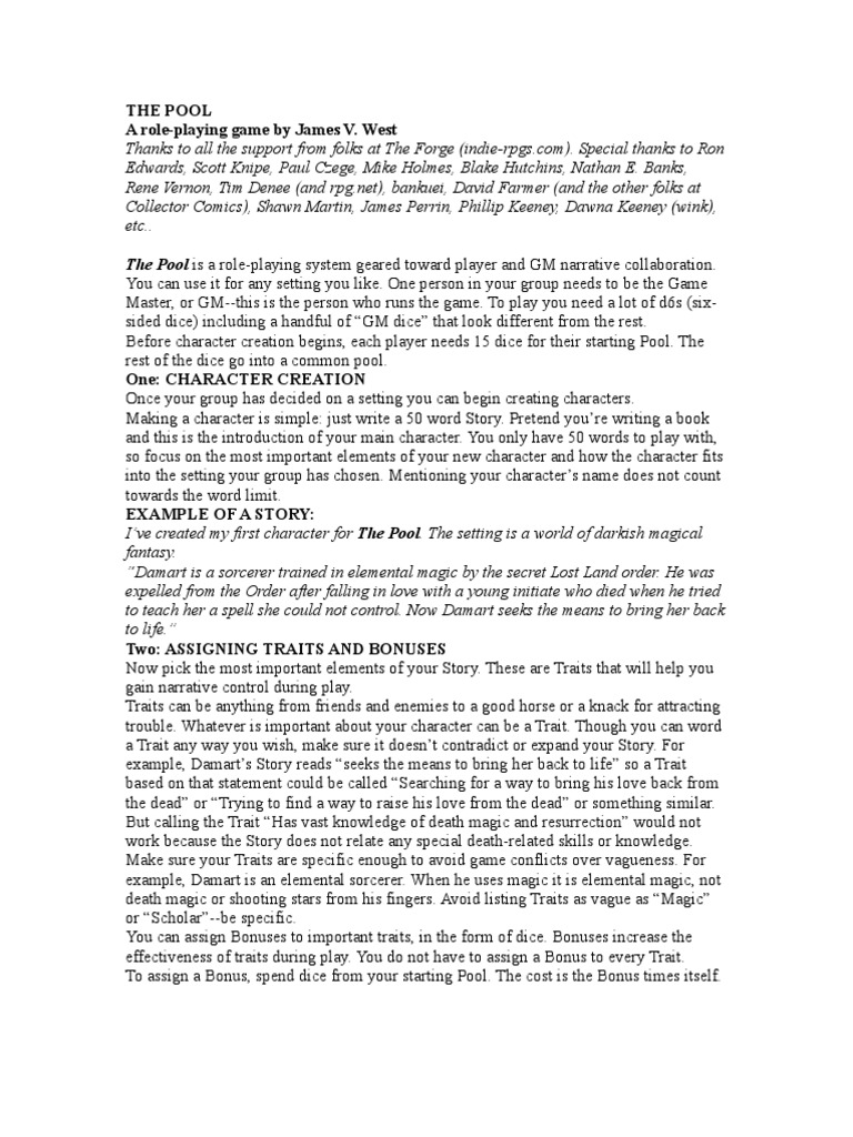 THE POOLA role-playing game by James V. West