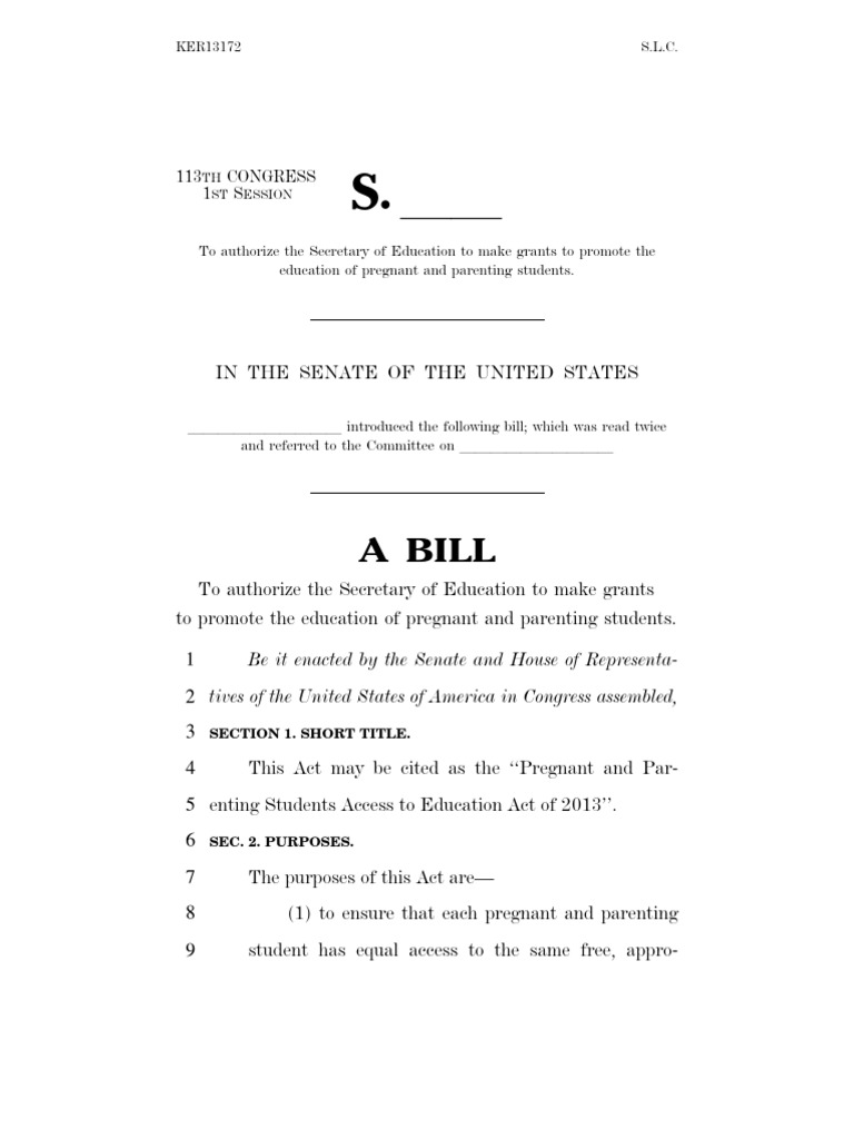 To authorize the Secretary of Education to make grants to promote the education of pregnant and parenting students.