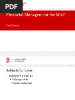 (1 + r) = (1 + i) / (1 + h) = (1 + 15%) / (1 + 5.5%) = 1.09 r = 9% The real rate can now be applied to the real flows without any further adjustments. Time 0 14 Money cash flow ($) (50,000) 20,000 Discount rate @15% 1 3.240 NPV = Note: Differences due to rounding. 3. 3.1 Taxation and Investment Appraisal Taxation can have an important impact on project viability. If management are implementing decisions that are shareholder wealth enhancing, they will focus on the cash flows generated which are available for shareholders. Therefore, they will evaluate the after-tax cash flows of a project. Payments of tax, or reductions of tax payments, are cash flows and ought to be considered in DCF analysis. Assumptions which may be stated in questions are as follows. (a) Tax is payable in the year following the one in which the taxable profits are made. Thus, if a project increases taxable profits by $10,000 in year 2, there will be a tax payment, assuming tax at 30%, of $3,000 in year 3. (b) Net cash flows from a project should be considered as the taxable profits (not just the taxable revenues) arising from the project. Capital allowances (tax-allowable depreciation, or writing down allowances (WDAs) or depreciation allowances) Writing down allowance is used to reduce taxable profits, and the consequent reduction in a tax payment should be treated as a cash saving from the