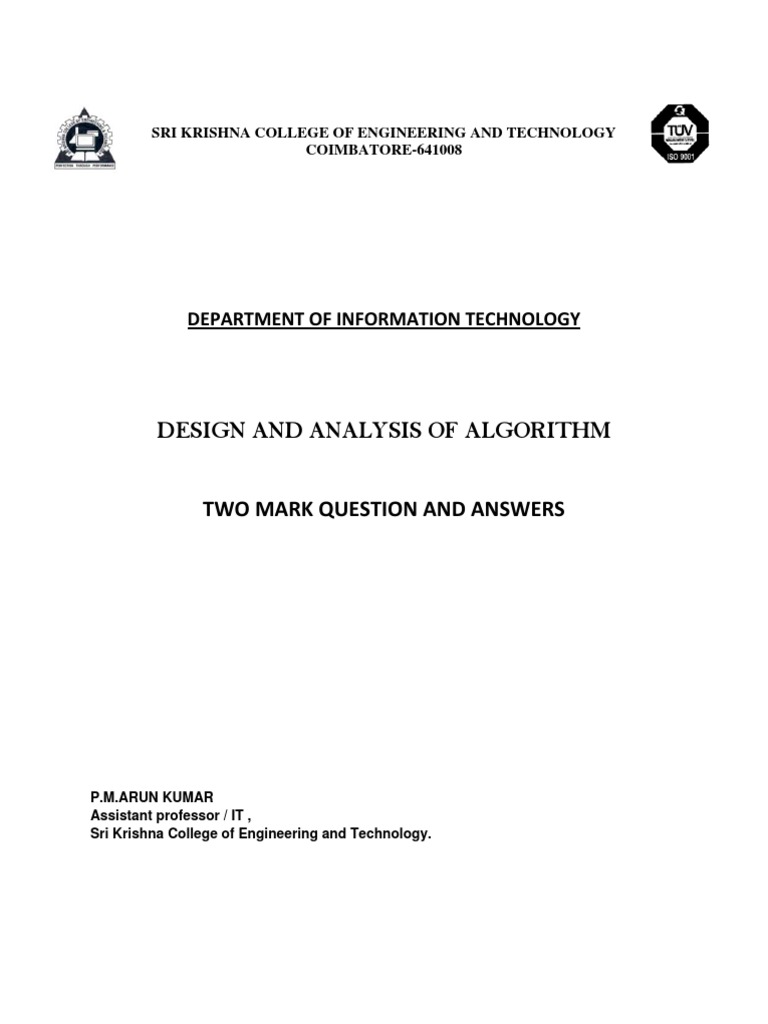 DESIGN AND ANALYSIS OF ALGORITHM TWOMARKQUESTIONANDANSWERS