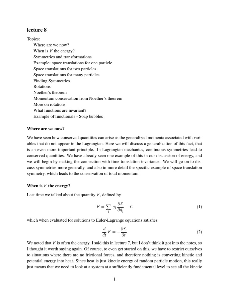 We noted that F is often the energy. I said this in lecture 7, but I dont think it got into the notes, so