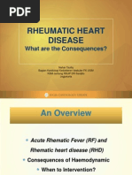 Asch offs bodies (fibrin deposits) develop on the valves, possibly leading to permanent valve dysfunction, especially of the mitral and aortic valves. Severe myocarditis may cause dilation of the heart and CHF.