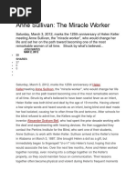 Sincerity Annie Sullivan knew how suffer Helen had facing since having a total disorder in herself where she cannot talk, cannot see and even cannot hear. All she can sense only by touching. Annie at the first place was as in same shoes as Helen where she was actually one of the patient at the Perkins School for the Blinds. Thus she is sincerely wanted Helen to be like her, succeed like her as well. Patient Annie Sullivan is best example to describe a person who is very patient. With the aggressive behavior that Helen owned since birth, she was calmly accept all the Helens flaws and be patient to teach Helen. She was never give up on Helen. Her