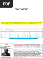 Our first example is space group No. 1, P1 the symbol informs us that we have a primitive lattice, and only 1 symmetry. A number, n, as a symmetry element in HermannMauguin notation refers to a rotation by 360/n degrees. Thus 1 refers to a 360 rotation. This element is also called the identity in group theory, as it represents a trivial operation of making no change. We will consider the effect of symmetry on a molecule or group located at a general position in the unit cell, with coordinates (+x, +y, +z). Lets try it now.
