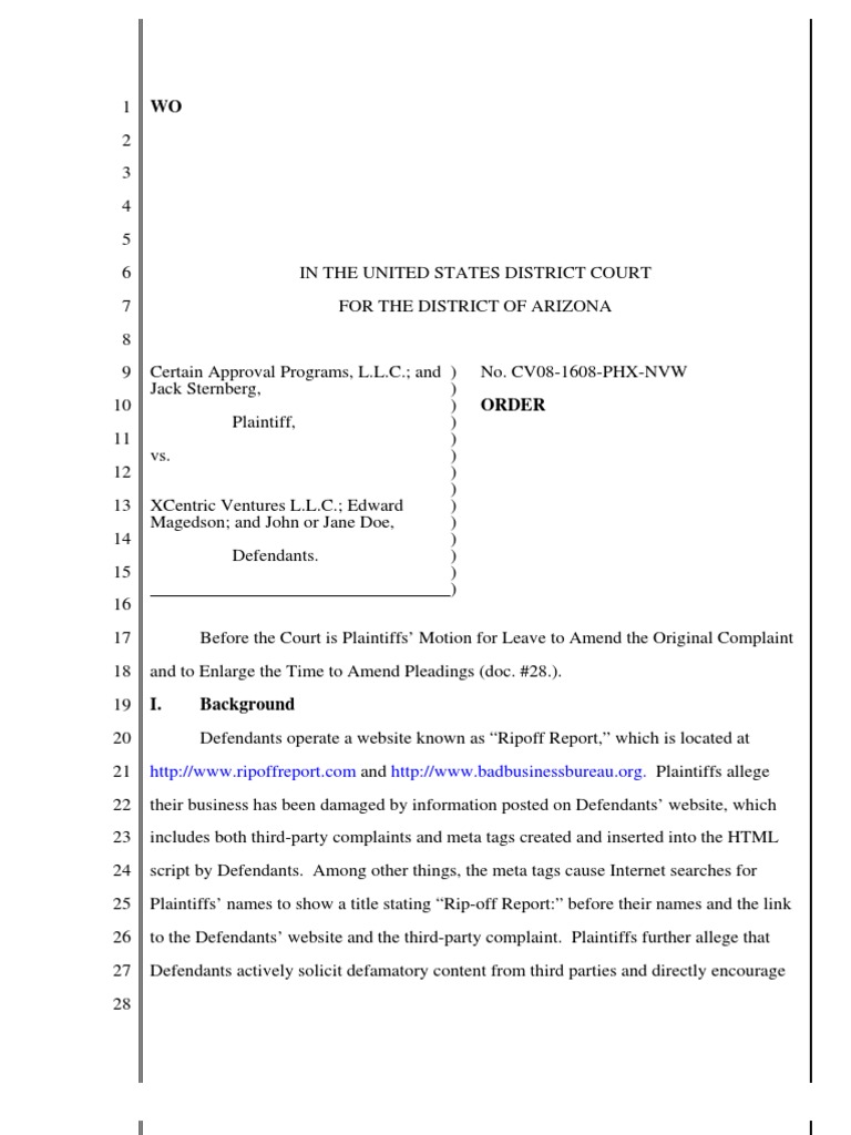 21 http://www.ripoffreport.com and http://www.badbusinessbureau.org. Plaintiffs allege