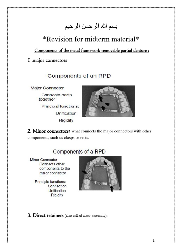 *Rest and rest set: - Rest: it is the part of the metal framework that sits on the top of the teeth. -Rest set: it is the area of the tooth that accepts the rest