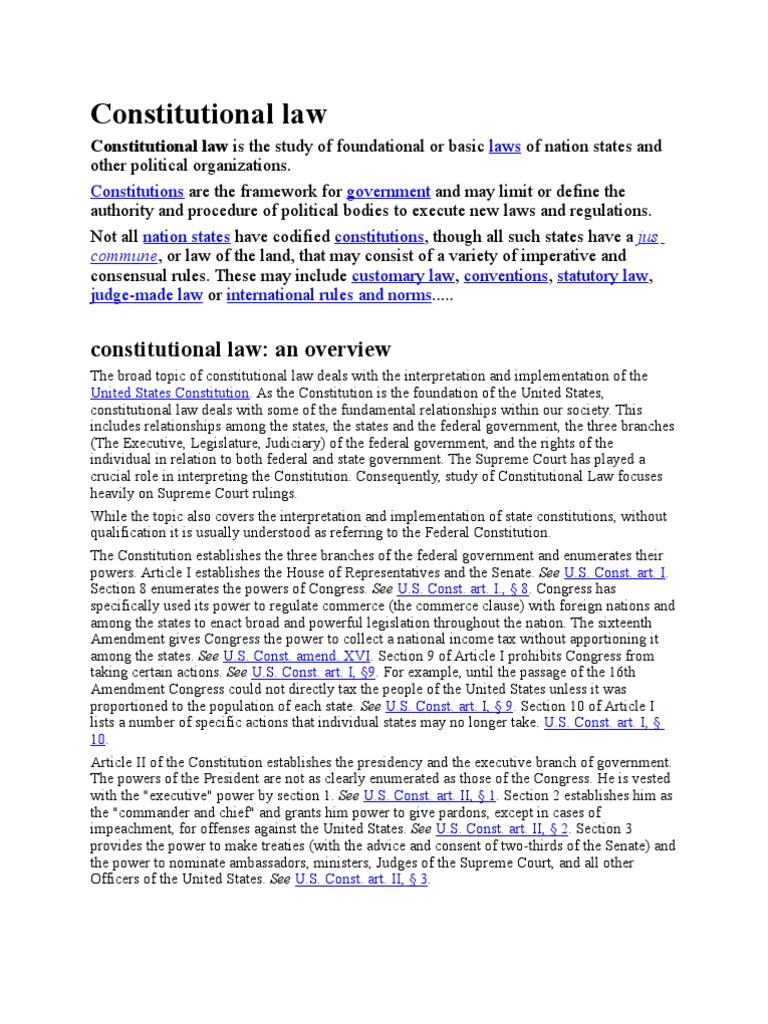 The broad topic of constitutional law deals with the interpretation and implementation of the