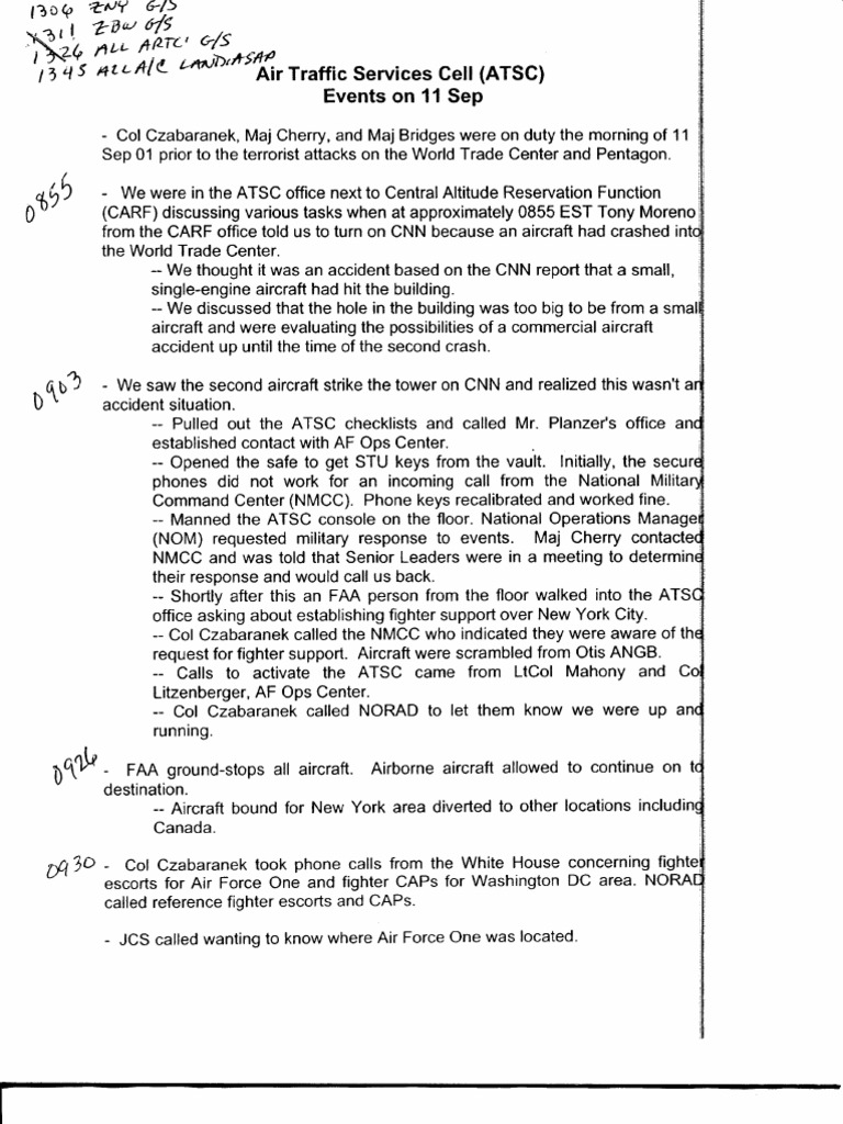 - Col Czabaranek, Maj Cherry, and Maj Bridges were on duty the morning of 1 1