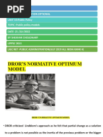 Lindblom starts from bounded rationality but draws different conclusions Rational, planned goal realisation is not possible nor desirable in decision making Decision making requires bargaining and negotiation systematic evaluation of policy options hampers that dynamic Policy requires feasible and supported decisions rather than decisions that maximally established a desired state of affairs