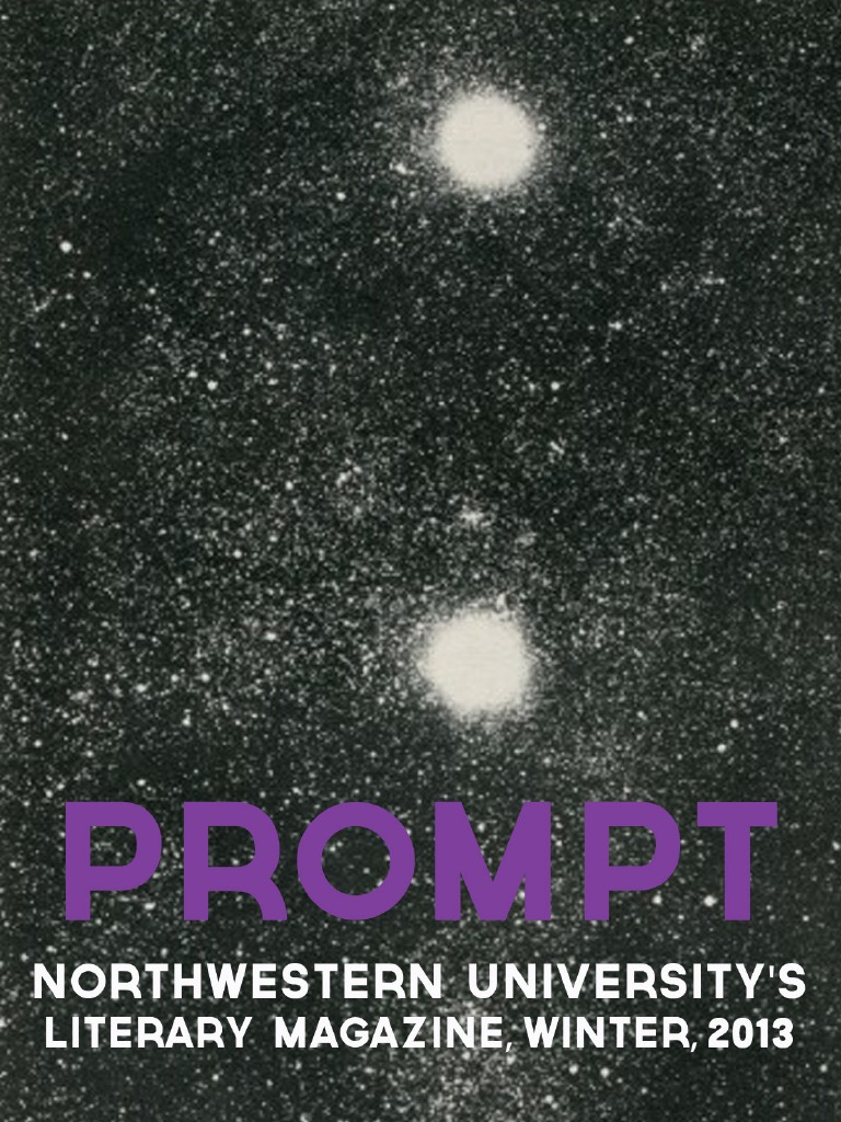 Dear Readers, Thank you for reading PROMPT. Putting out our print issue is always important for us, because it is our most tangible way of sharing the writing and art of our peers with the Northwestern community as a whole and to showcase the immense talent and creativity that is so present at this school. Writing can be seen as a solitary art-- a stereotype which is oftentimes based in reality. Through PROMPT we hope to create a space where writing can be shared and where isolation can be replaced briefly with collaboration and communication. By reading our magazine, you are expanding our literary and artistic community. I am so lucky to have had the privilege of reading and viewing all of the incredible submissions PROMPT received, and I am so proud of the collection with which you are presented. Happy reading, and I hope that you close the magazine as inspired by it as I am. Yours in creativity, Kathryn Halpern PROMPT Editor-in-Chief