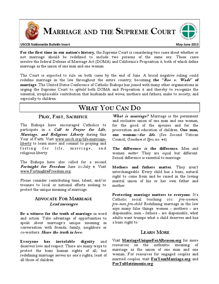 Bulletin Insert Marriage and The Supreme Court Spring 2013
