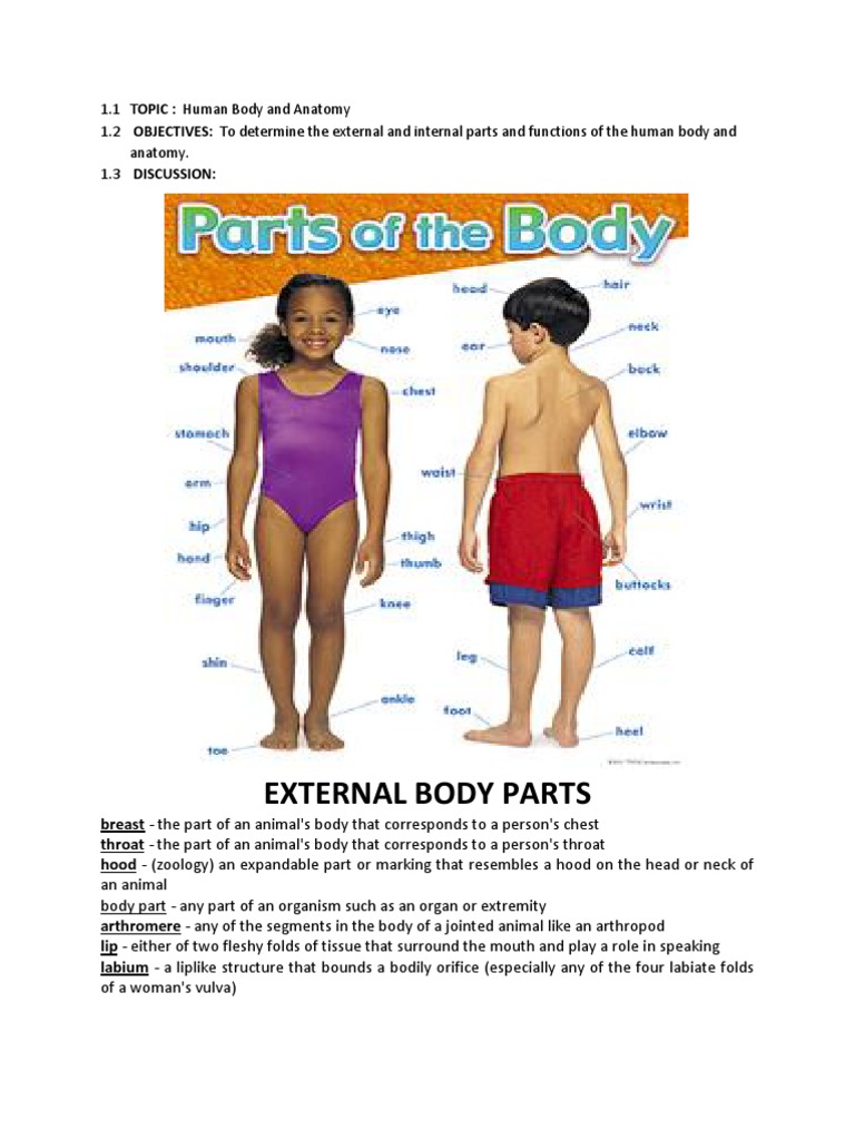 2 OBJECTIVES: To determine the external and internal parts and functions of the human body and anatomy. 1.3 DISCUSSION: